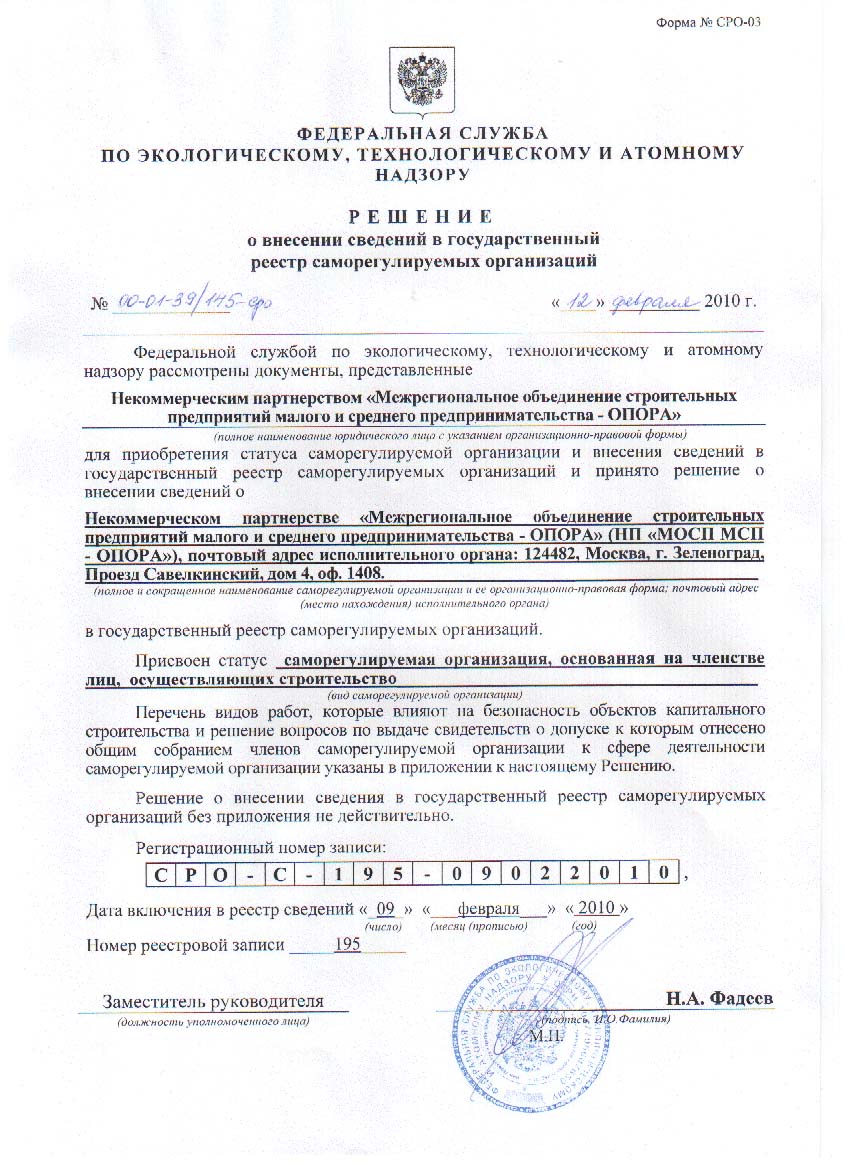 Ассоциация Саморегулируемая организация «Московское объединение строительных предприятий малого и среднего предпринимательства – ОПОРА»