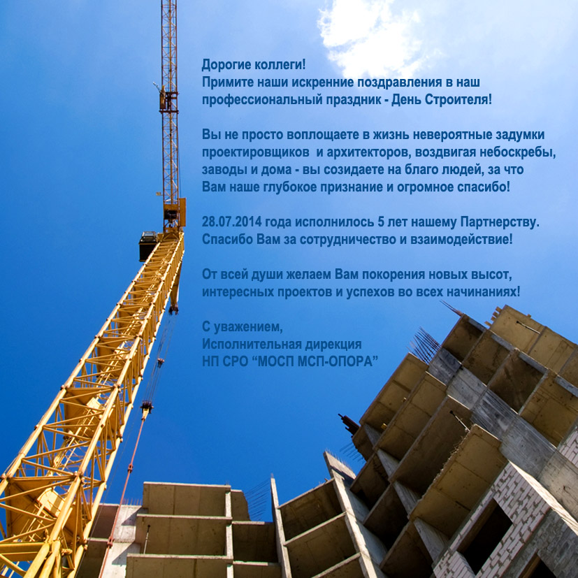 Поздравление с Днем Строителя!